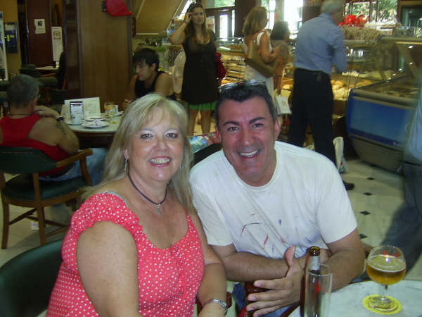 Entramos en una cafetería,, que risa con ella, le digo al camarero yo quiero una cervecita, y el camarero ,me dice,,,, pues yo también jajjajajajajajajaj,, i le digo tomate una,,,, jajjajaja y Balbi dice pué yo una pero de esas tontas,,,,,,, jajajaajaj pero con un desparpajo, que tela marinera. Le pregunto a Balbi,,, pero conoces al camarero, y me dice que no ,, menuda pecha de reír, nos dimos,, pueeeee naaaaa que cogio el camarero, y nos hizo la apreciada foto,,,,,,,,,……….. A que estamos guapos los dos?????